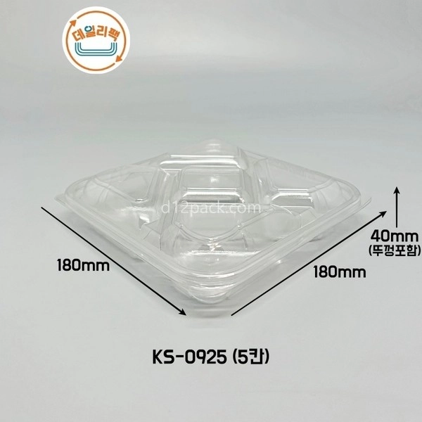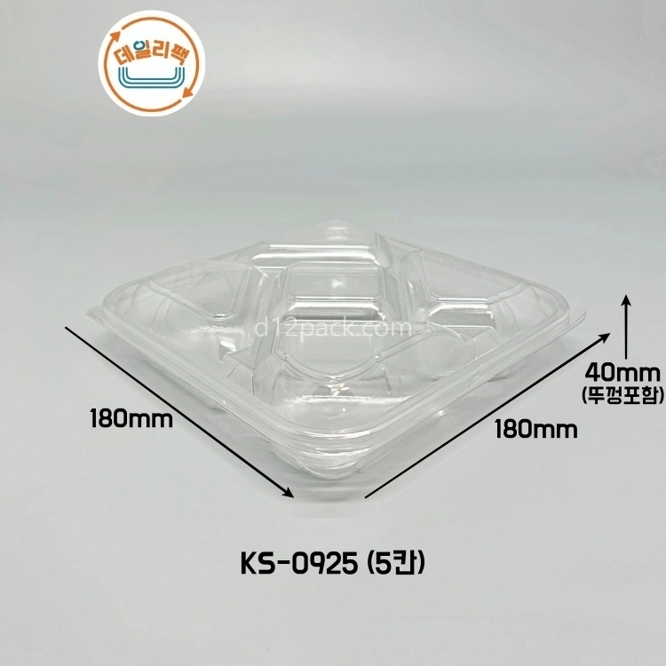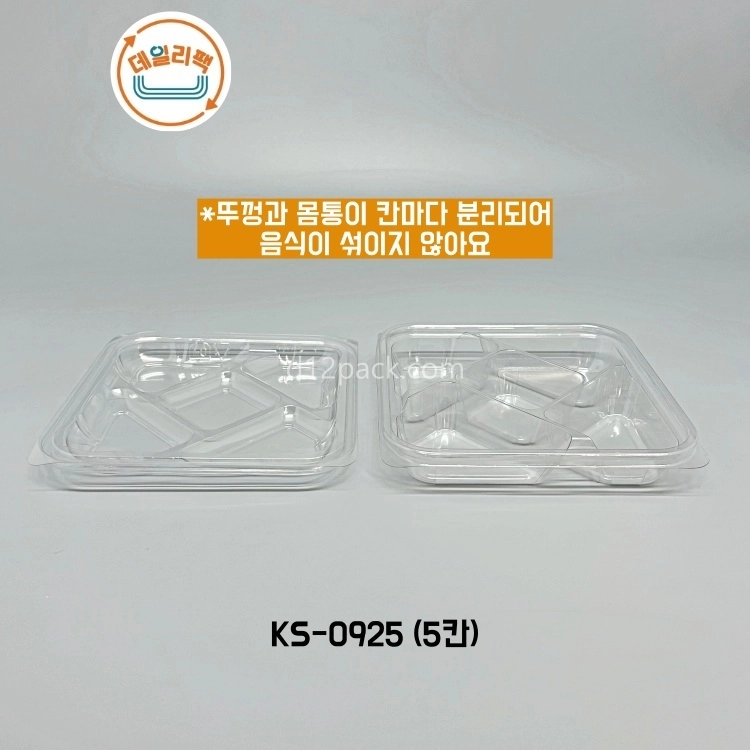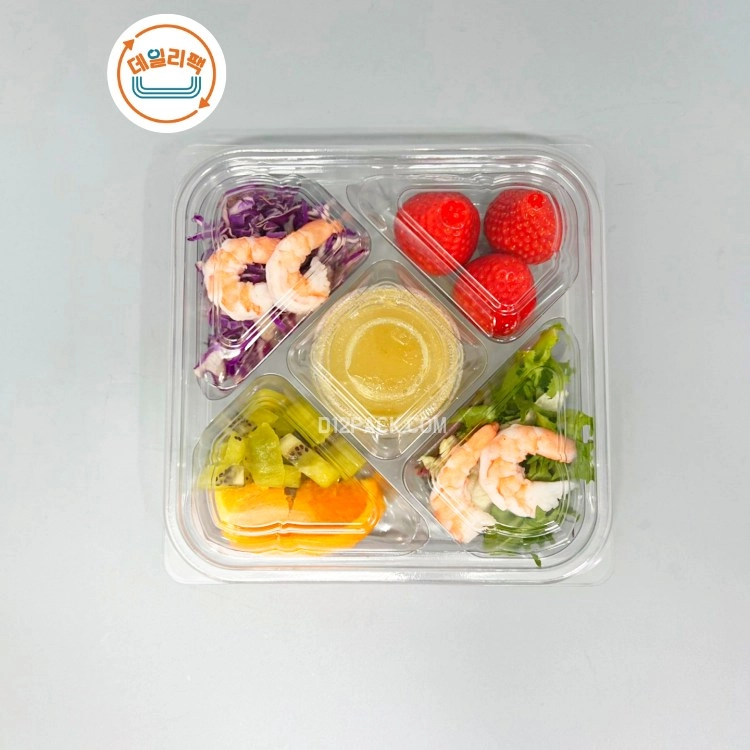 [소량180세트] PET정사각 KS-0925 5칸용기 과일포장 피크닉도시락 디저트용기 샐러드NEWBEST