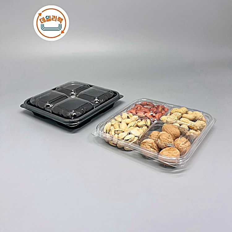 KS-정사각 4칸 반찬 일회용용기