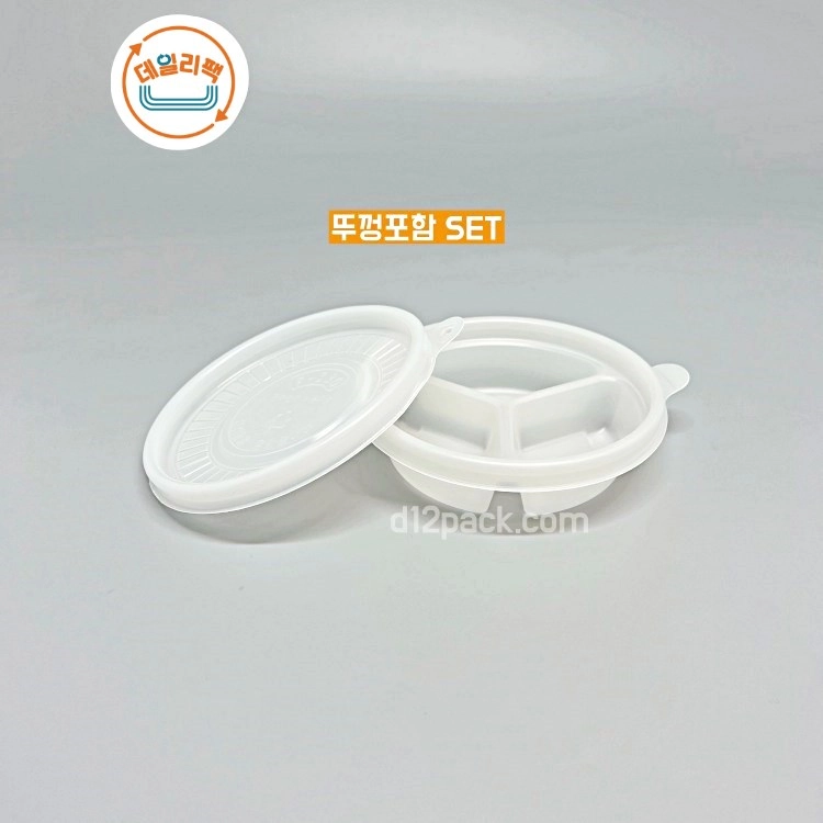 원형3칸용기 원형죽용기 3칸반죽용기 원형반죽용기 3칸반찬포장용기 전자레인지용기 d12pack